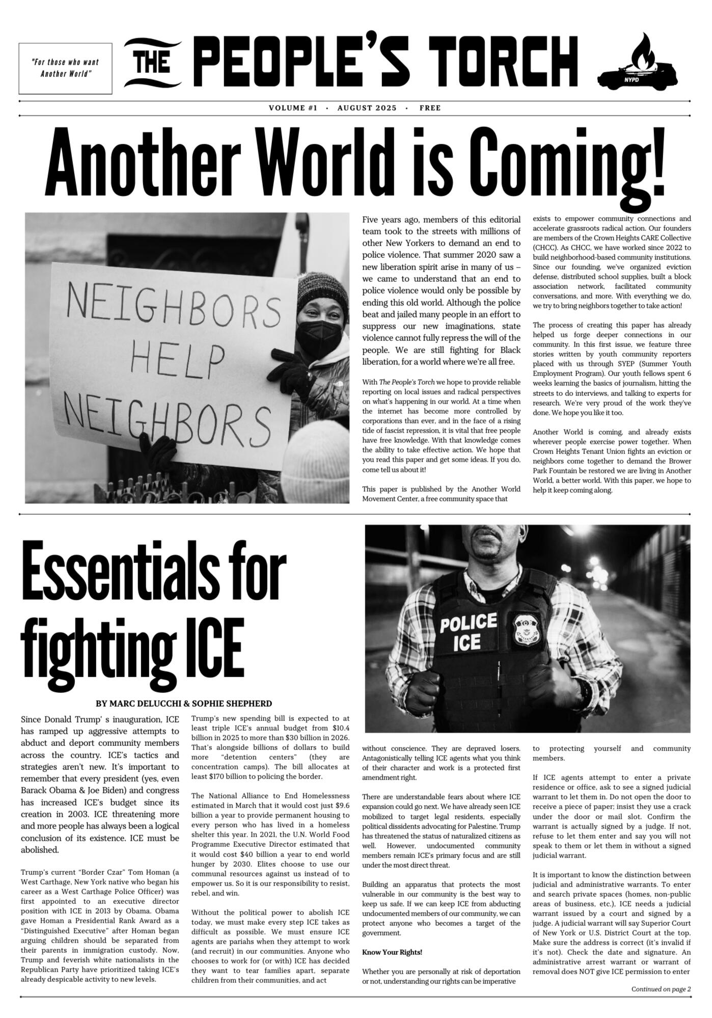 The People's Torch is a hyperlocal community newspaper produced by Another World volunteers, local organizers, and youth fellows.